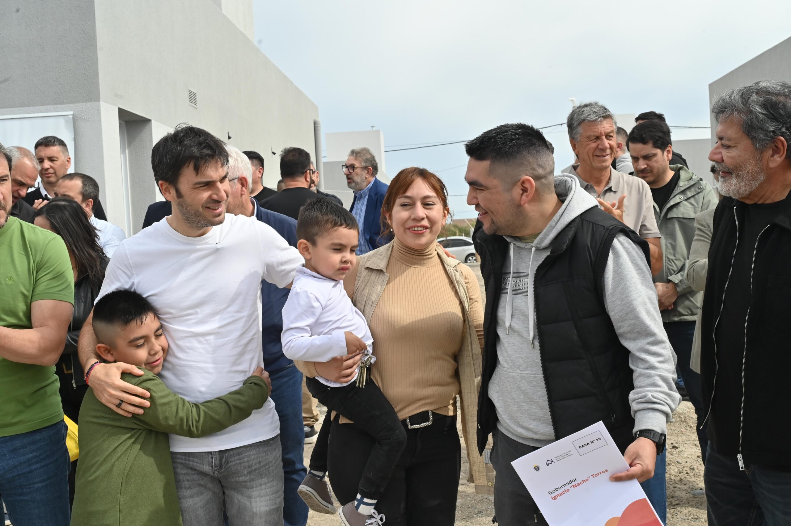 Torres destacó que «este es un acto que termina concretando lo más importante de gobernar, que es nivelar hacia arriba, generar oportunidades y, en este caso, brindar una solución habitacional para muchas familias de Trelew» y señaló que «detrás de cada una de estas viviendas, hay trabajo».